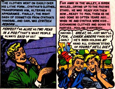 Tales From The Crypt Twin siblings Carl and Cynthia Dunn always looked a lot like each other. Down on his luck, Carl decides to kill both Cynthia and her wealthy husband, and then impersonate her to inherit the money. He would have gotten away with it too, if it weren't for those nosy kids and their dog. (Well, not quite...but he does make one teensy little mistake.) |